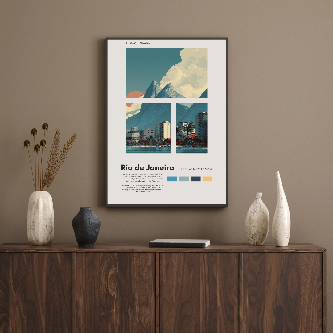 Capture the vibrant spirit of Rio de Janeiro with this striking poster.